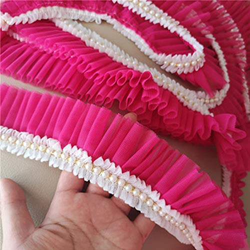 Bene Omnia Orlo in pizzo arruffato, tulle pieghettato con perline, per realizzare bambole, torte nuziali, abiti con tulle, 6 cm x 1,8 m, 5 fucsia