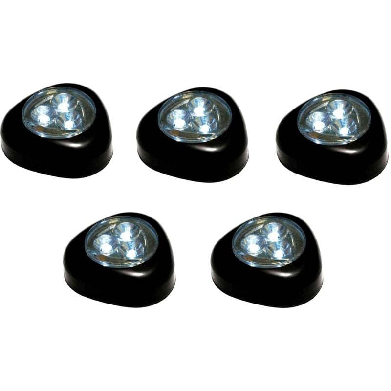 5 pezzi OmniaLaser luce con 3 led (oltre 100.000 ore) Utile in armadio, corridoio, scale, garage, camera bimbi o in qualsiasi altro angolo buio Alimentazione 3xAAA (non incluse) Dimensioni: 65x65x21mm E' possibile fissarla tramite magnete o biadesivo (entrambi non inclusi) Per accendere o spegnere basta premere leggermente sui led