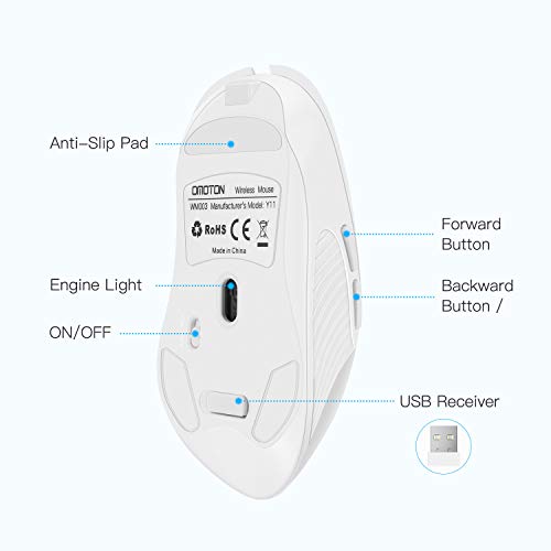 OMOTON Mouse wireless ricaricabile con ricevitore USB, 2.4G USB+Type C Wireless Mouse per desktop, laptop, PC e altri dispositivi, argento