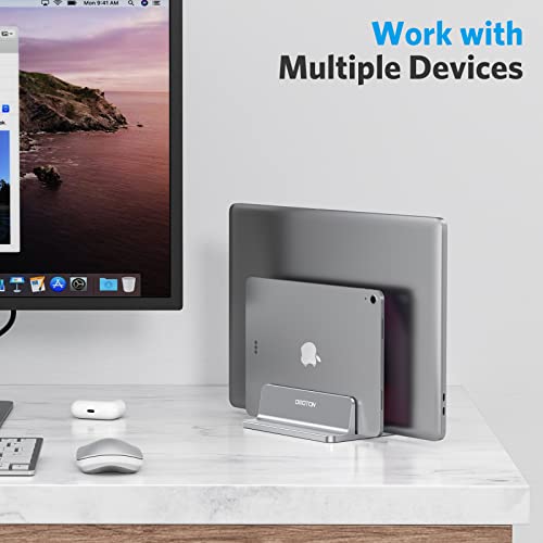 OMOTON Supporto Verticale per Laptop, Doppio Slot in Alluminio per Computer e Tablet, Salvaspazio Compatibile con MacBook/iPad/HP/Microsoft e Altri Laptop(fino a 17,3 pollici), Grigio