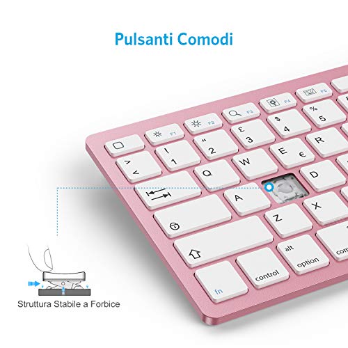 OMOTON Tastiera Bluetooth per iOS, Layout Italiano Compatibile con iPad 10.2 2021/2020/ 2019/10.5/9.7/11/ 12.9 Pollici, iPad PRO Air Mini e iPhone-Sottile e Leggera Oro Rosa