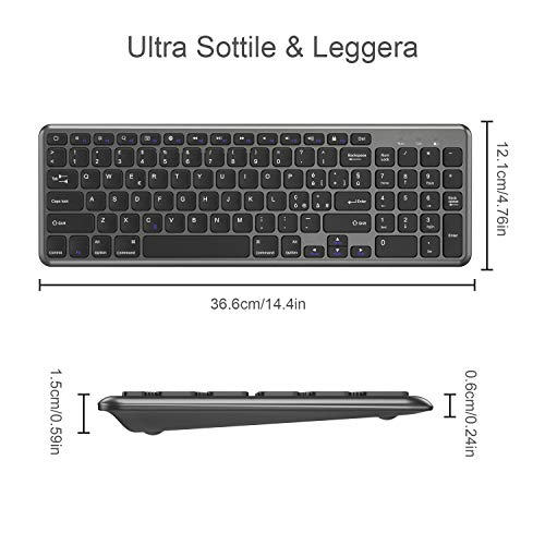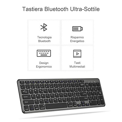 OMOTON Tastiera Bluetooth Wireless Compatibile con iPad/iPhone - Layout Italiano - Ultra Sottile e Leggera - Tasti Numerici Separati - Compatibile con Tutti i Dispositivi di iPad e iPhone - Nero