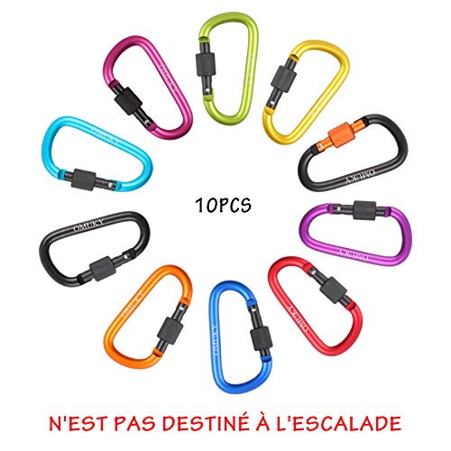OMUKY D - Moschettone a moschettone con blocco in alluminio, leggero e resistente, per donna, per campeggio, escursionismo, cane, zaino (10 colori)