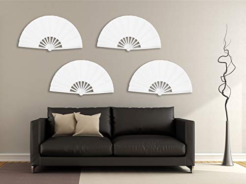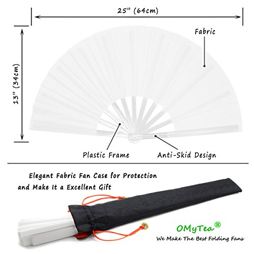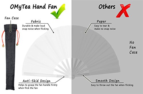 OMyTea Grande Ventaglio Pieghevole Giapponese Cinese per Le Donne Uomini - Ventilatore Pieghevole in Tessuto Di Bambù - per Matrimoni, Danza, Chiesa, Partito, Regali, Tai Chi, Kung Fu (Bianco)