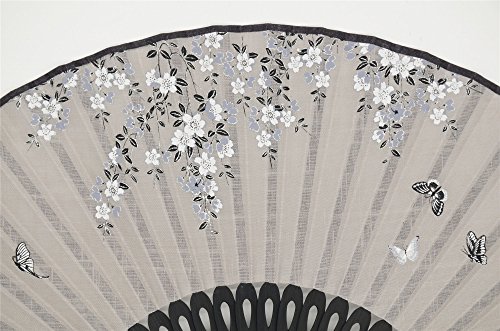 OMyTea Sakura Love Ventaglio Pieghevole Giapponese Cinese per Le Donne - Ventilatore Pieghevole in Tessuto Di Bambù - per Matrimoni, Decorazioni, Spettacoli, Danza, Chiesa, Partito, Regali (Grigio)