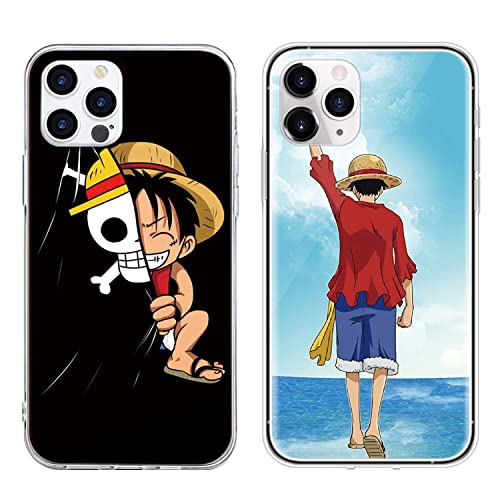 Omyzo [2 Confezioni] Cover per Apple iPhone 12/12 Pro 6,1", Anime One Piece Luffy Ace Protezione Case, Custodia Silicone Ultra Slim TPU Morbido Antiurto Bumper Case per iPhone 12 Pro, 2