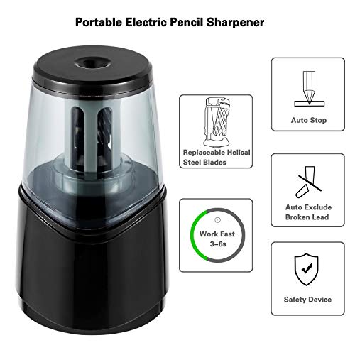 Blocco automatico e funzionamento veloce: l'altro vantaggio del temperamatite usb è il blocco automatico. È possibile inserire la matita dalla parte superiore per temperarla e si ferma automaticamente quando la punta è affilata. Inoltre, il nostro temperamatite colorato ha una lama elicoidale resistente che può essere affilata velocemente, ha solo bisogno di 3-6 secondi. La lama elicoidale è rimovibile e può essere sostituita in caso di rottura.