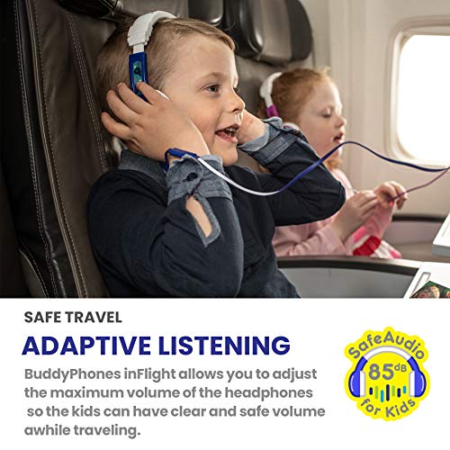 ONANOFF BuddyPhones InFlight, Cuffia cablata per bambini, 0.8 m, Blu/Bianco
