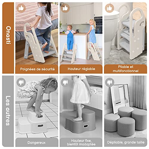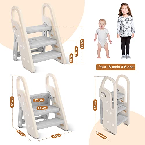 Onasti Sgabello a tre gradini pieghevoli per bambini, Scaletta 3 gradini per bambini, Sedile per Addestramento per WC, Multifunzione, Regolabile in Altezza, Antiscivolo