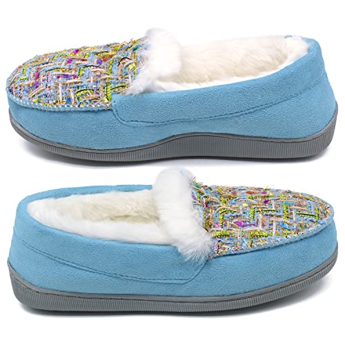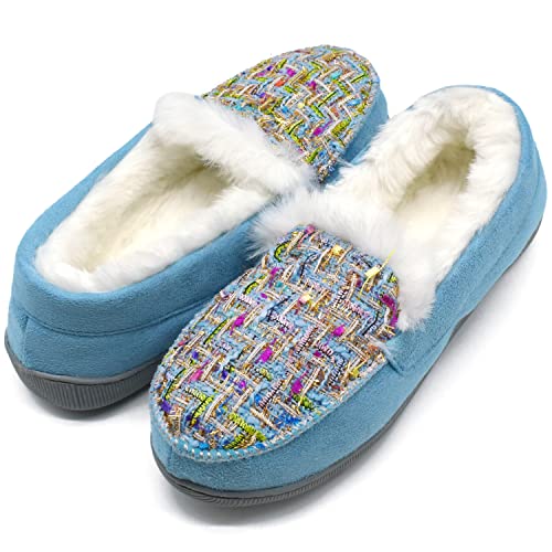 ONCAI, calde pantofole invernali da donna in memory foam, in peluche, per interni ed esterni, in gomma, blu, 39 UE, 39 EU