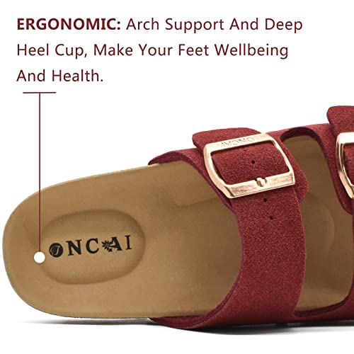 ONCAI, pantofole da donna comode, con plantare in sughero, modello Suede, Rosso (Colore: rosso), 41 EU