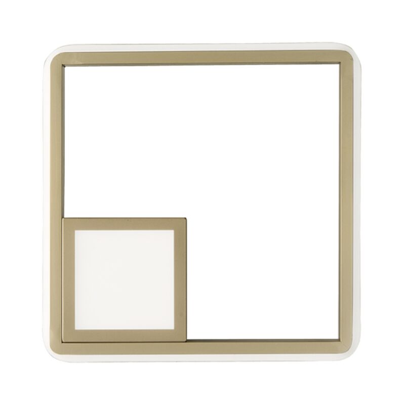 Applique DOWEL in metallo verniciato. Composta da due quadrati ognuno contenente una sorgente Led integrata. Il suo design ultra moderno rende questo elemento unico nel suo genere, adatto per chi e' alla ricerca della perfezione estetica delle forme geometriche anche nell'arredamento. Ideale per un ingresso, corridoio o soggiorno living. . L' applique DOWEL e' realizzata interamente in metallo verniciato, ed e' composta da due quadrati, ognuno contenente una sorgente LED dimmerabile. CARATTERISTICHE Colore: Oro Materiale: Metallo verniciato Tipologia: Applique Larghezza: 25 cm Altezza: 25 cm Profondita': 6 cm Dimmerabile: no Illuminazione: LED integrato Potenza: 22W (17W + 5W) 1010-2200LM Input: 220-230V Colore luce: 3000K