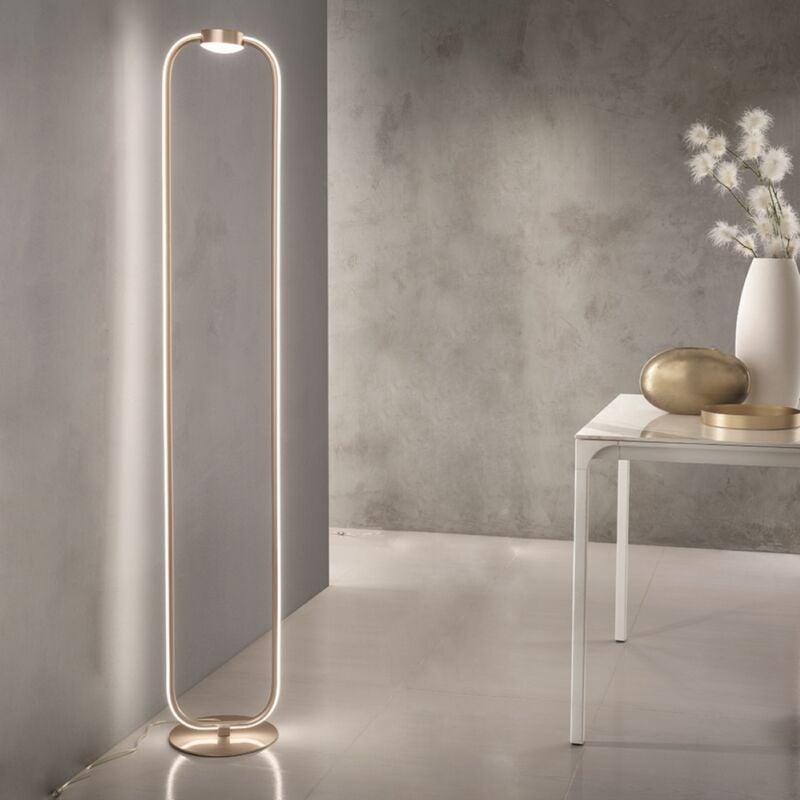 Lampada da terra piantana moderna ALFA a luce LED in metallo con diffusore polimerico altezza 168 cm 35W luce dimmerabile. . Lampada da terra moderna,perfetta soluzione d'arredo pensata per offrirti un'elemento decorativo illuminzanione di qualita'. Emana una luce diffusa esternamente al perimetro della struttura e nel piccolo bottone rotondo posto al suo interno, rivolto verso il basso. Perfetta per arredare e illuminare ogni spazio della vostra casa,ideale per salotto, soggiorno, camera da letto oppure l'ufficio. La luce e' dimmerabile in modo da cambiare l'intensita' della luce a piacimento attraverso un sistema touch. CARATTERISTICHE Colore: Oro Materiale: Metallo con diffusori polimerici Tipologia: Piantana Larghezza: 26 cm Altezza: 165 cm Dimmerabile: si Illuminazione: LED integrato Potenza: 35W 2000-3500LM Input: 220-230V Colore luce: 3000K