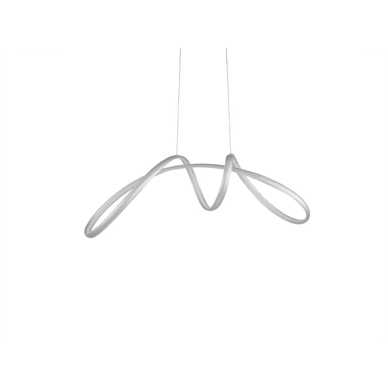Lampada a sospensione LUMEN a LED in metallo silver La lampada a sospensione LUMEN e' realizzata intermanete in metallo rifinito argento con diffusore in materiale polimerico. Cavi in acciaio regolabili in lunghezza. Un lampadario dal design particolare con delle linee assolutamente originali e intrecciate, concepito per illuminare ed arredare in modo totale e diffuso ogni tipo di ambiente moderno come ad esempio il soggiorno living ma anche stanze di uffici. Modello 2: GRANDE Dimensioni: Altezza Massima 120 cm / Larghezza 110 cm / Sporgenza 37 cm Illuminazione: LED INTEGRATO 60W 230V 6000LM 3000K