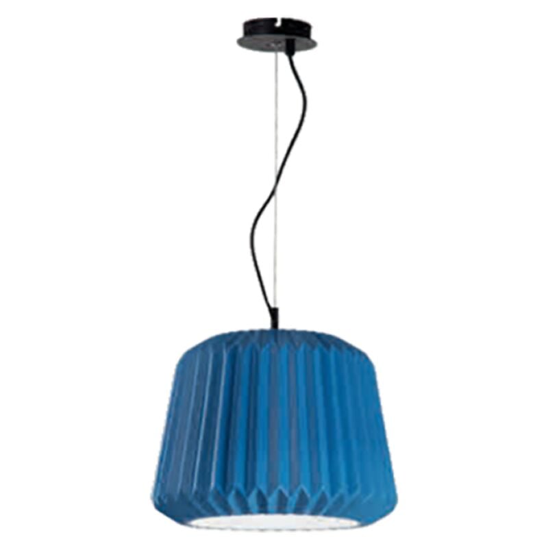 Sospensione PLUMCAKE composta da una struttura in metallo e un diffusore in ceramica. Cavetto regolabile in lunghezza. Un elemento che si adatta bene ad ambienti moderni, e grazie alla sua semplicita' e versatilita' e' possibile installarlo in qualsiasi stanza della casa, dalla cucina alla zona living. Lampada a sospensione PLUMCAKE in metallo verniciato con diffosre in ceramica CARATTERISTICHE Colore: Blu Materiale: Metallo, ceramica Tipologia: Lampada a sospensione Diametro: 35 cm Altezza max: 199 cm Dimmerabile: NO Illuminazione: 1xE27 (L' attacco E27 permette di installare lampadine a LED, fluorescenti o alogene) Lampadine non incluse Input: 220-230V