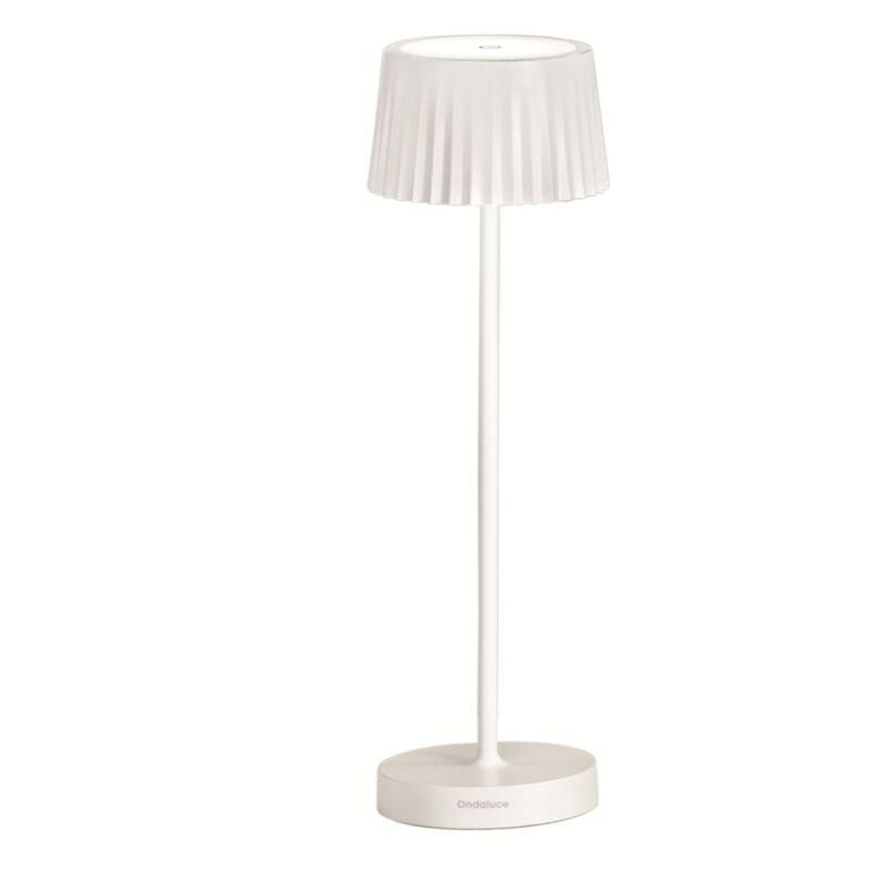 perfetta per essere collocata sopra i tavoli all'aperto di locali pubblici oppure del vostro giardino. Grazie all'alto grado di protezione IP54,questa lampada da tavolo e' resistente alla pioggia e altri agenti atmosferici. CARATTERISTICHE Colore: Bianco Materiale: Alluminio/ABS Struttura: Alluminio - Diffusore: ABS Tipologia: Lampada da tavolo Diametro: 12 cm Altezza: 38 cm Dimmerabile: Si Touch: Si Illuminazione: LED integrato Potenza