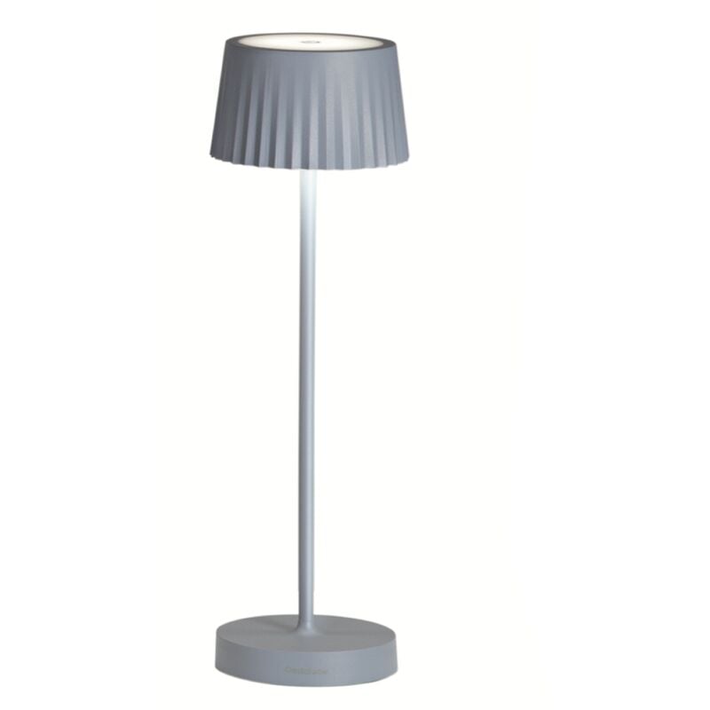 Lampada da tavolo LED senza fili MACAO con ricarica USB. Accensione, spegnimento e dimmerazione della luce con sistema touch, 8 ore di autonomia con 100% di intensita' luminosa. La lampada e' dotata di sorgente led integrata con colore luce 3000K, bianco calda. Lampada da tavolo moderna e innovativa, facile da trasportare ovunque grazie alle sue dimensioni ridotte e alla possibilita' di utilizzarla senza fili. MACAO e' ideale per mettere in risalto e rendere unico l'arredamento esterno di giardini, attivita' commerciali, ristoranti, sale ricevimento;