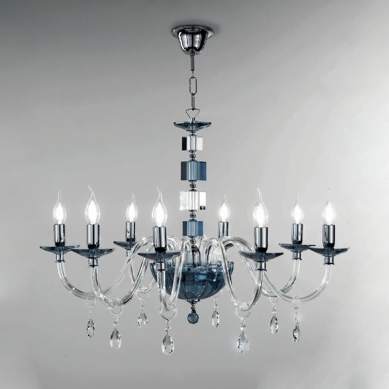 Lampadario a sospensione LIVIA composto da piccoli cubi bianchi e trasparenti molto particolari che si distanziano delle linee morbide dei bracci. Questo lampadario e' perfetto per illuminare grandi ambienti come il soggiorno o il salotto. Il prodotto e' imballato con estrema cura, non viene spedito gia' montato, ed occorre effettuare il montaggio e assemblaggio dei pezzi in vetro direttamente in loco. Questo lampadario essendo realizzato artigianalmente puo' presentare delle imperfezioni dovute alla lavorazione come piccole bollicine d'aria o micro graffi. CARATTERISTICHE Colore: Ottanio Materiale: Vetro, metallo Tipologia: Lampada a sospensione Modello: 6 luci Altezza max: 120 cm Diametro: 70 cm Dimmerabile: NO Illuminazione: 6 x E14 (L'attacco E14 permette di installare lampadine a LED, fluorescenti o alogene non incluse). Input: 220-230V