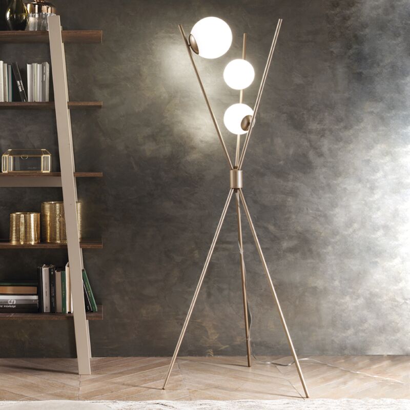 Piantana COROLLA realizzata interamente in metallo verniciato con 3 diffusori a palla in vetro soffiato. Un elemento dal design moderno che si adatta bene a qualsiasi tipo di stanza della vostra casa, perfetto per arredare e illuminare ad esempio un salotto o uno studio. Piantana COROLLA con struttura in metallo e 3 diffusori in vetro soffiato. CARATTERISTICHE Colore: Oro Colore diffusori: Bianco Materiale: Metallo, vetro Tipologia: Piantana Altezza: 173 cm Larghezza: 65 cm Profondita': 65 cm Dimmerabile: NO Illuminazione: 3 x E14 (L'attacco E14 permette di installare lampadine a LED, fluorescenti o alogene non incluse) Input: 220-230V
