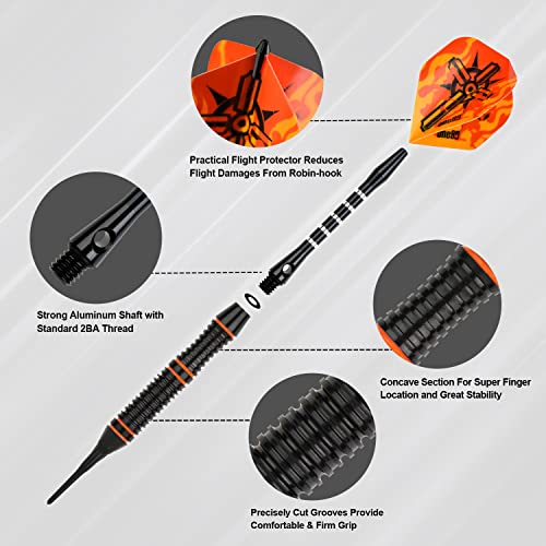 ONE80 Freccette morbide con punta in plastica, 12 x 18 g, per bersaglio, 18 fusti in alluminio, 21 alette in PVC, 62 punte per freccette, 20 arancioni