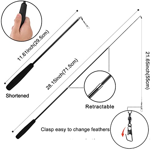 ►ALTA QUALITÀ, SICURO E NON TOSSICO: tutti i giocattoli sono realizzati con materiale sicuro e non tossico, la piuma naturale ispira la natura selvaggia del gatto, è amico dei gatti. Il giocattolo con bacchetta da pesca telescopica realizzato con nuovo materiale con maggiore elasticità e durezza, più spesso e più resistente. Il manico del giocattolo della canna da pesca è realizzato in schiuma EVA, è molto comodo da tenere. E il gancio aggiornato della linea è facile da sostituire i giocattoli.