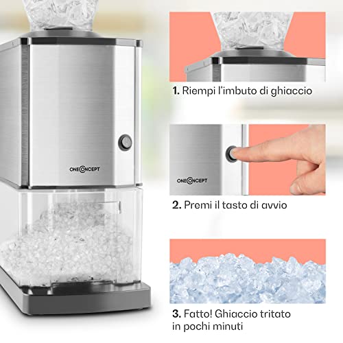 OneConcept Icebreaker - Tritaghiaccio, 15 kg/h, 3,5 litri (circa 1,75 kg) vaschetta di raccolta, Interruttore di sicurezza, compatto, facile da pulire, corpo in acciaio inox, argento