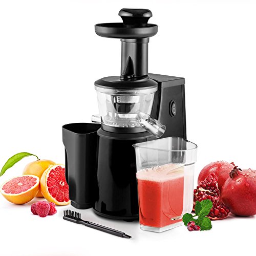 OneConcept Jimmie Andrews SlowJuicer estrattore di succo (400W, estrazione a freddo, velocità orario e antioraria, due contenitori in dotazione) - nero