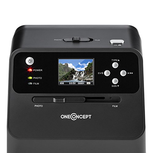 Il Genio a tutto fare della fotocamera: Il scanner fotografica 4 in 1 oneConcept pdf-14b digitalizza le foto, diapositive, negativi di film e persino le immagini direttamente da un album senza utilizzare di computer.