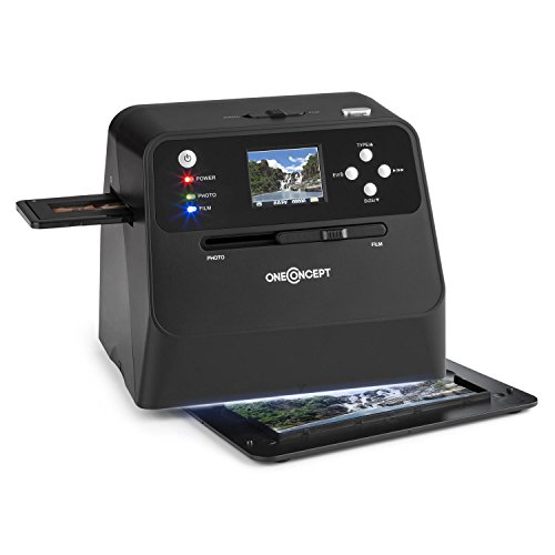 OneConcept PDF-14B - Combo Scanner 4 in 1, Digitalizzazione Foto Diapositive Film Album, 3200dpi, 14Mpx, USB 2.0, Supporti per Foto, Diapositive e Film, Display LCD, Nero