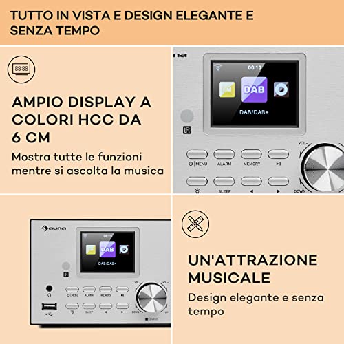 GODITI FINO A 14.000 STAZIONI: Questa radio Bluetooth dab è preimpostata con 14.000 stazioni per darti massima scelta su cosa ascoltare. Include lettore CD e può essere utilizzata come sveglia con timer e autospegnimento.