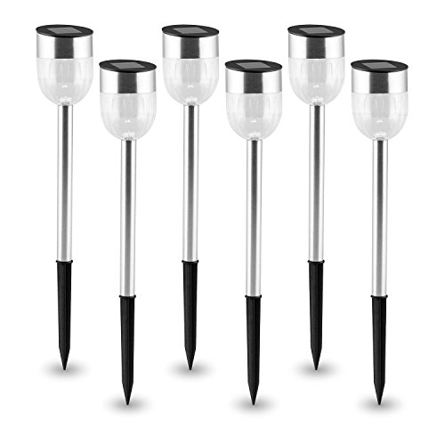 OneConcept Tulipan 6 Lampade Da Giardino Ad Energia Solare (struttura in acciaio INOX, impermeabili, chiodo per fissaggio al terreno) Bianche