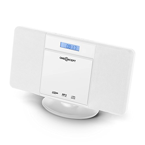 Oneconcept V-13-BT - Stereo CD, Mini Impianto Stereo Compatto, Bluetooth, Lettore CD MP3, Display LCD, Porta USB MP3, AUX-In, Sveglia, Telecomando, BassBoost, Montaggio a Parete, Bianco