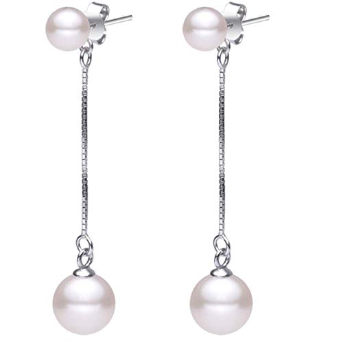 Onefeart Placcato Nell'oro Bianco Orecchini pendenti Donne Ragazza Tondo Perla lungoppa Design Signora Stile 6X10MM Oro bianco