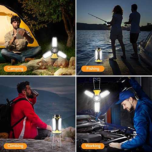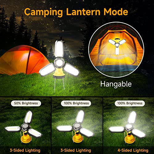【Lampada Campeggio Ricaricabile a LED ad alta luminosità】Questa lampada campeggio ricaricabile & lampada ricaricabile può fornire una luminosità massima di 400 lumen. La lampada campeggio ricaricabile & lampada ricaricabile ha una testa della lampada regolabile a 90° e 4 pannelli LED regolabili, che coprono un'area di illuminazione più ampia, che fornisce un'illuminazione uniforme per il campeggio. L'illuminazione a 360° della luce campeggio consente di illuminare da tutte le direzioni.