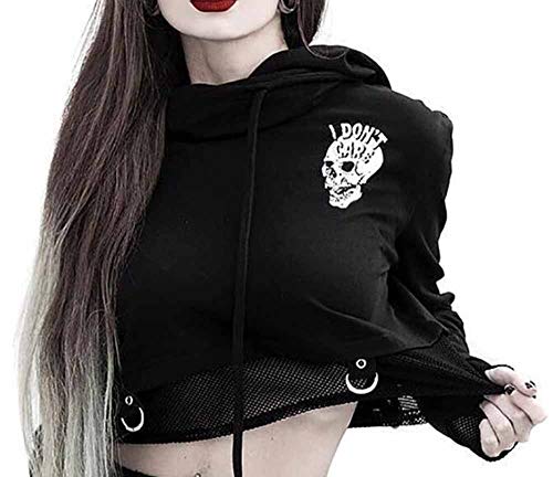 Oneforus Pullover da Donna in Maglia Punk Gotica Nera con Cappuccio Pullover con Cappuccio Steampunk in Metallo con Fasciatura