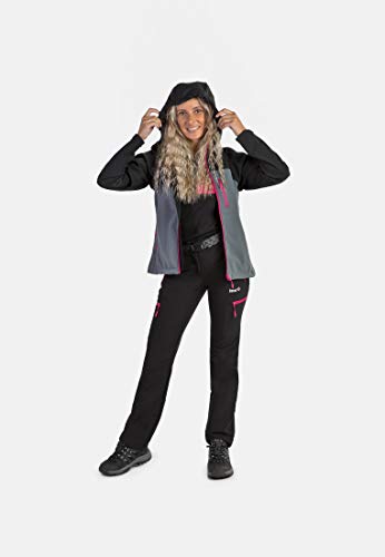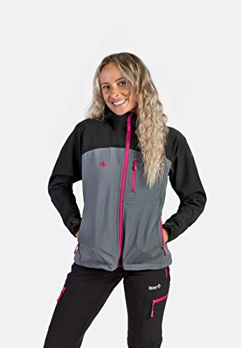 IZAS Onega Giacca Softshell con Cappuccio, Donna, Nero/Grigio Scuro, XS