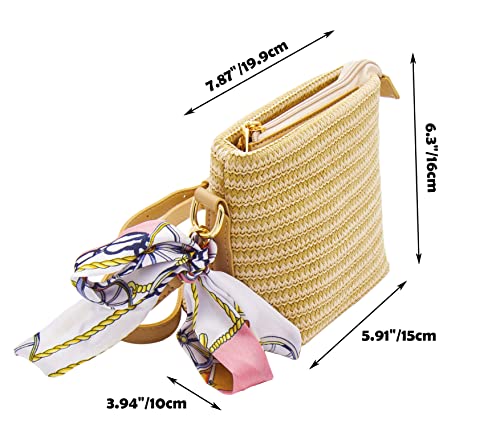 ONEGenug Borsa in paglia da donna, con sciarpa vintage, borsa a tracolla da spiaggia, per donne e vacanze (Taglia S-Stile A)