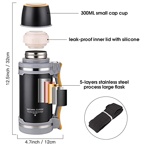 Oneisall, thermos in acciaio inox modello GYBL074 2L, con doppia parete in acciaio inossidabile (senza bisfenolo A) e tazza per escursionismo, campeggio, allenamento e altro Stainless Steel