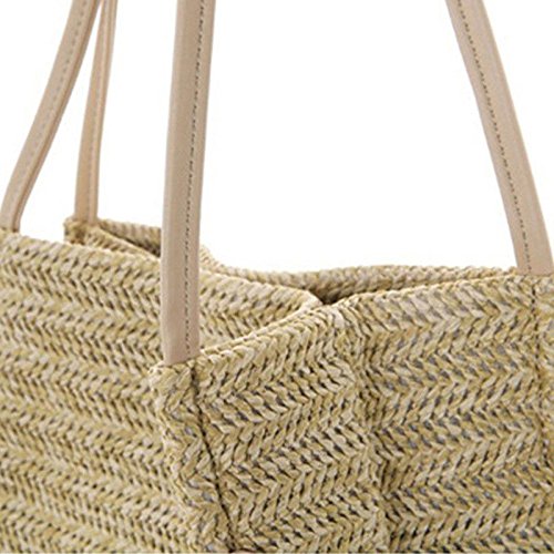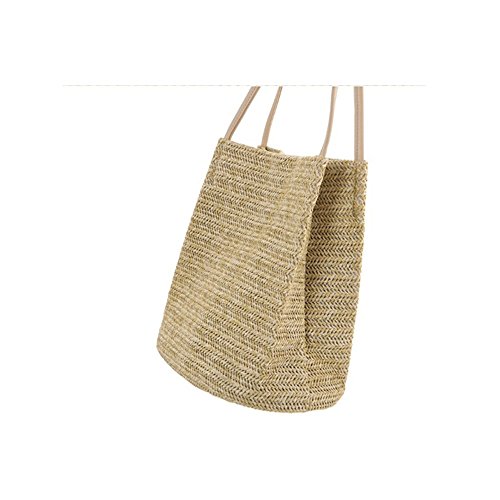 OneMoreT - Borsa da donna, in paglia, grande borsa estiva da spiaggia, stile bohémien L Light brown