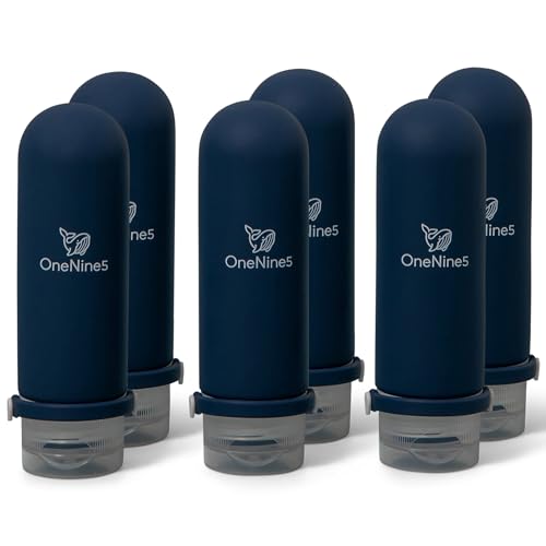 OneNine5 6-Pack of 65ml Blue Silicone & Reusable Travel Bottles. TSA/Airline Approved. With Squeezy, Refillable & Leak-Proof Design. For Toiletries & Cosmetics.