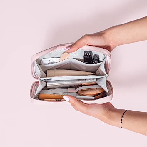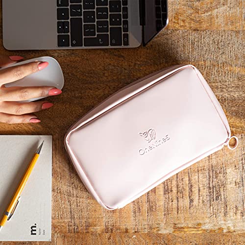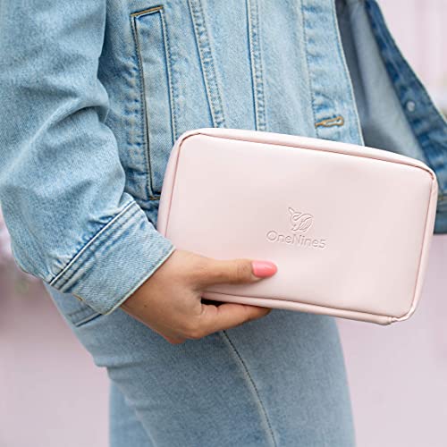 OneNine5 Eco-Friendly Essentials Pouch, Komodo Pink, Organiser & Bag for Makeup & Everyday Accessories with Vegan PU Leather & 100% Recycled Plastic Lining