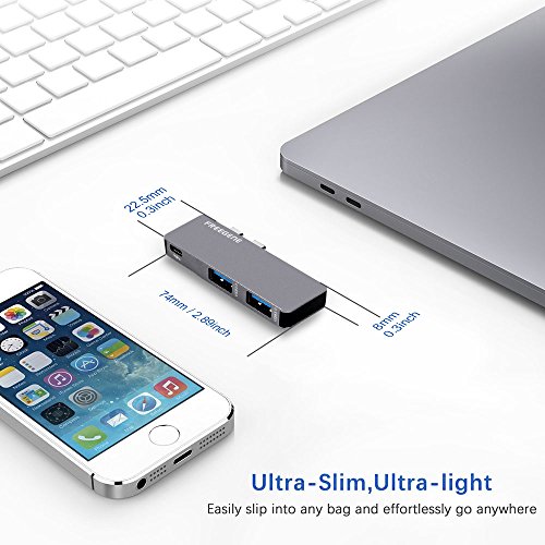OneOdio Hub USB C 6 in 1, adato alluminio per MacBook Pro 13"e 15" 2016/2017, 40 Gb Thunderbolt 3, ricarica pass-through, lettore di schede SD/Micro e 2 porte USB 3.0 di Freegene (3-in-1)
