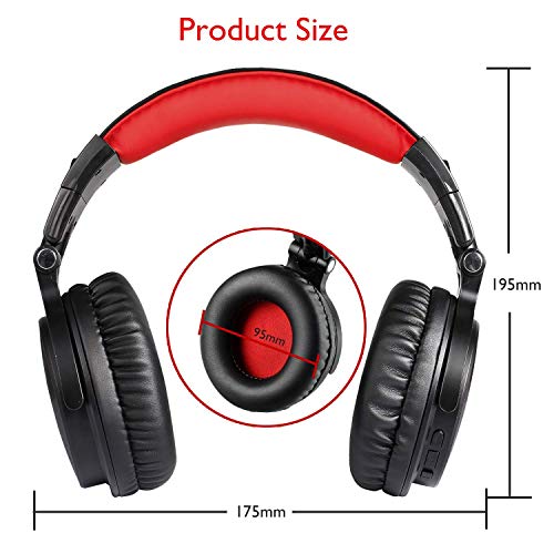 OneOdio Cuffie Hi-Fi wireless Bluetooth con microfono da gioco plug-in, 30 ore di riproduzione audio per iPhone, laptop, dispositivo, ufficio, TV Studio Wireless M Nero e rosso