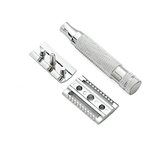 OnePlace Gifts - Rasoio di sicurezza con doppio bordo inciso, per uomo, resistente, 5 lame incluse