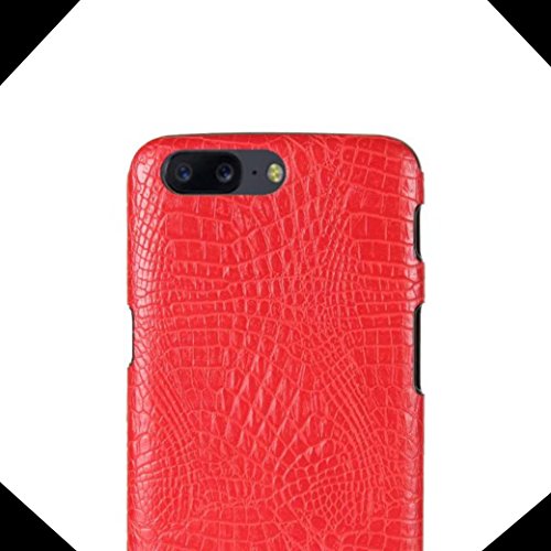 2017 OnePlus5 Crocodile Shell, QIYUAA New Special Unique Cayman Alligator Design Soft Carbon Fiber Very Slim Light Protection Cover Generous Pure Color Crocodilian Phone Case Fit For For OnePlus 5 Red