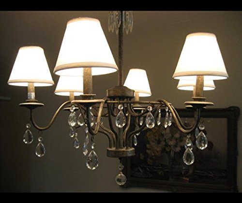 ONEPRE lampadario a clip, color crema, rigido, paralume in lino bianco sporco 15,2 cm, set da 6., bianco