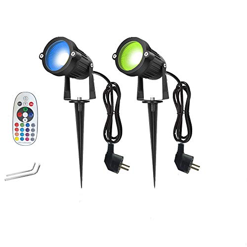 Onerbuy Landscape Lighting 6W Faretto LED RGB Che Cambia Colore con Telecomando, 2 Pezzi Proiettore LED Impermeabile IP66 per Interni e Esterni (RGB EU Plug)