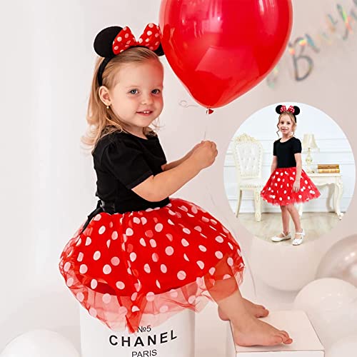 Oneroomone 4 Pezzi Topo Pois Abito da Principessa, Costume da Topo, Fascia con Orecchie da Topo, per Mascherata, Carnevale, Festa di Carnevale