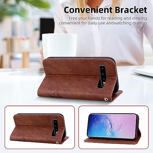 ONETHEFUL Cover Samsung Galaxy S10 Premium Pelle PU Flip Libro Funzione di Supporto Magnetica Flip Telefono Custodia per Samsung S10 Marrón