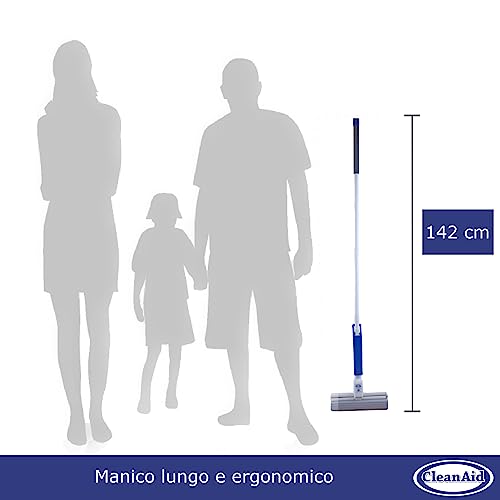 ATTENZIONE: La spugna della scopa lavapavimenti deve essere morbida e messa a mollo prima di ogni utilizzo e cambio di spugna. PULIZIA DEL PAVIMENTO ECCELLENTE - Il mocio lava pavimenti con spugna Onetouch Magic del marchio Cleanaid offre un risultato di pulizia eccezionale. Infatti, la spugna in PVA assorbe l'acqua in eccesso per lasciare i pavimenti di casa tua immacolati, asciutti e puliti. Inoltre questo mocio per pavimenti permette una perfetta rimozione dei peli degli animali domestici.